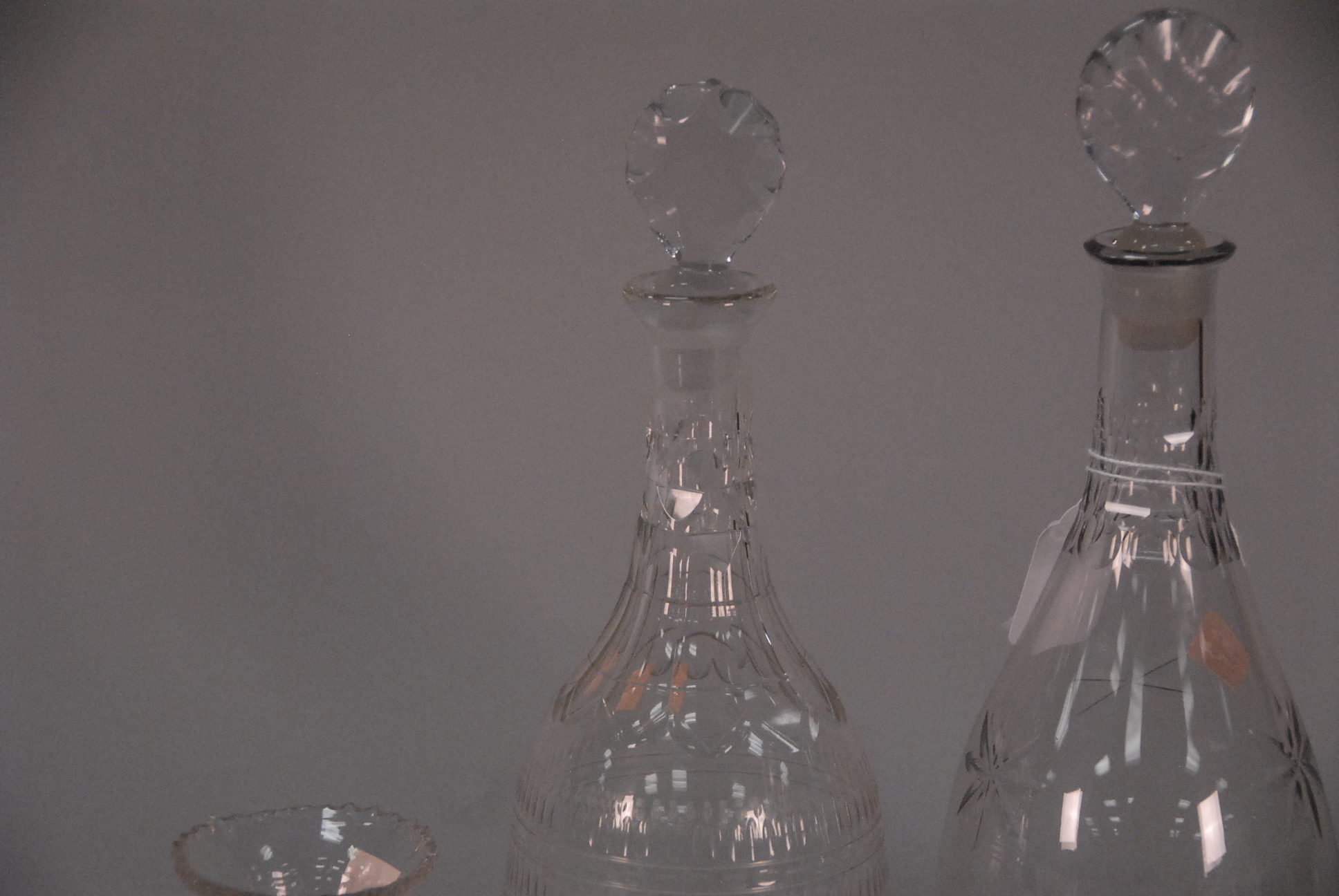 Lot 99: Eight piece Crystal lot to include two decanters and six glasses with heavy square crystal bases.