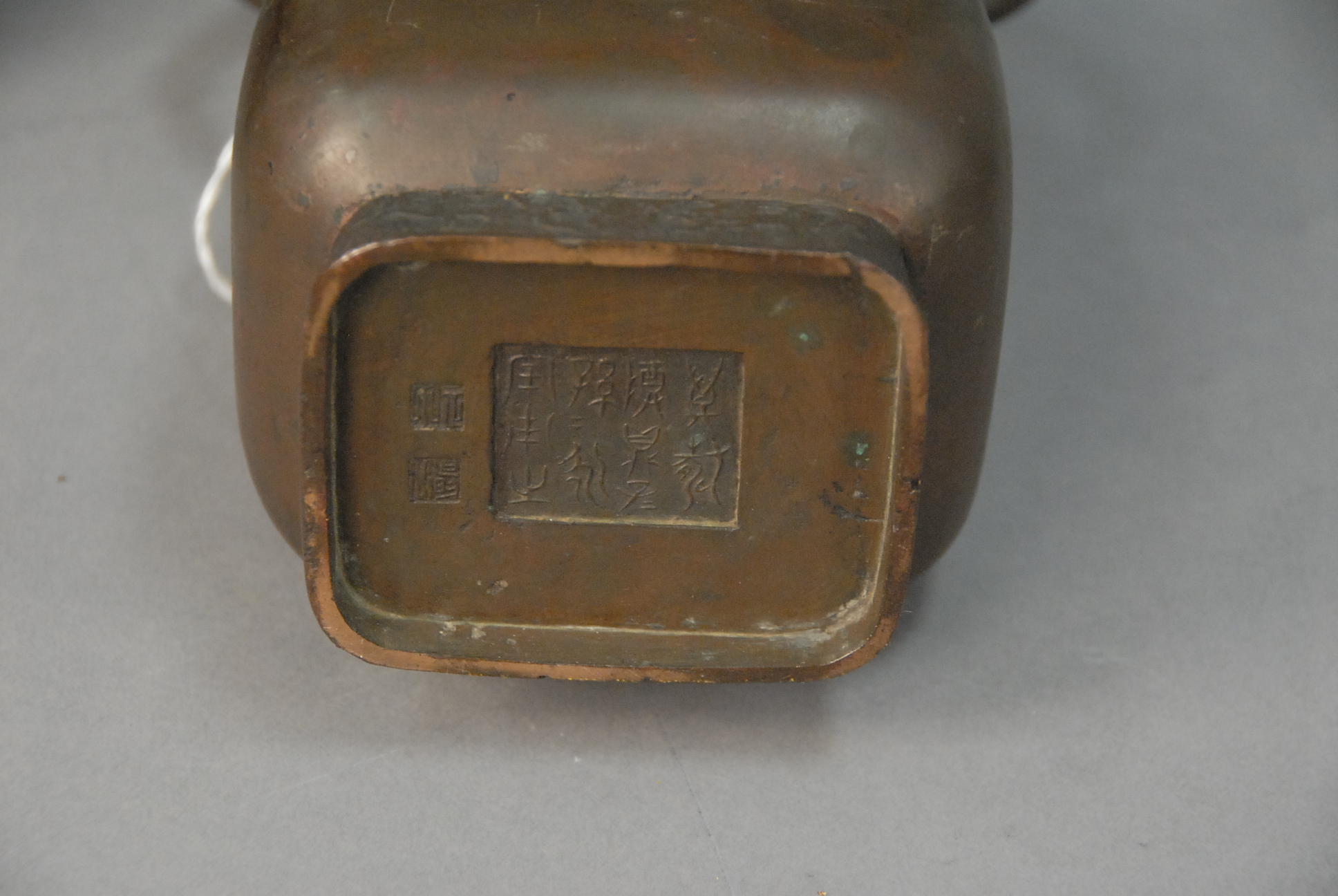 Four piece bronze lot to include vase made into a table lamp, a covered urn, a vase, and a foo dog tail loose.