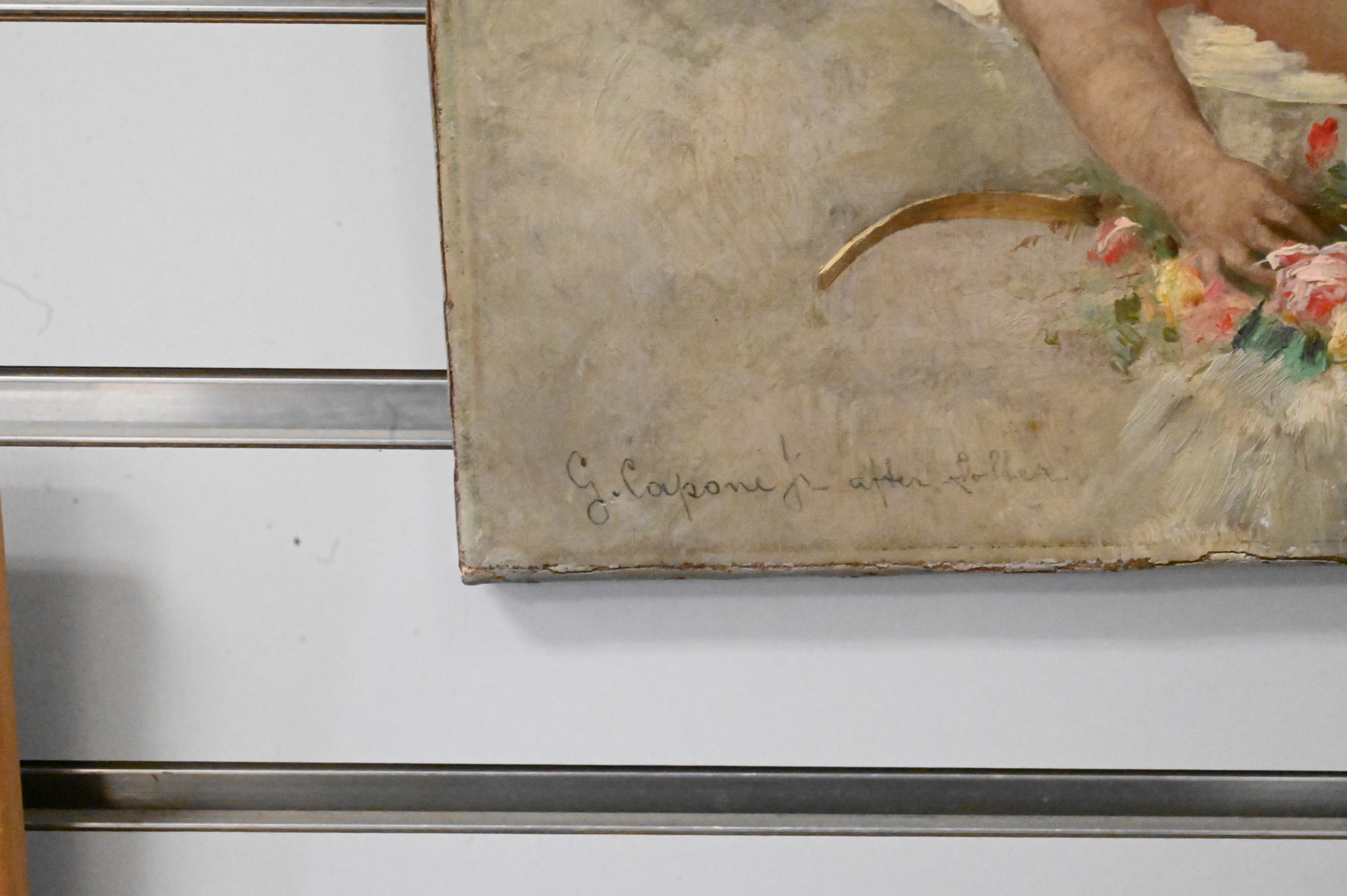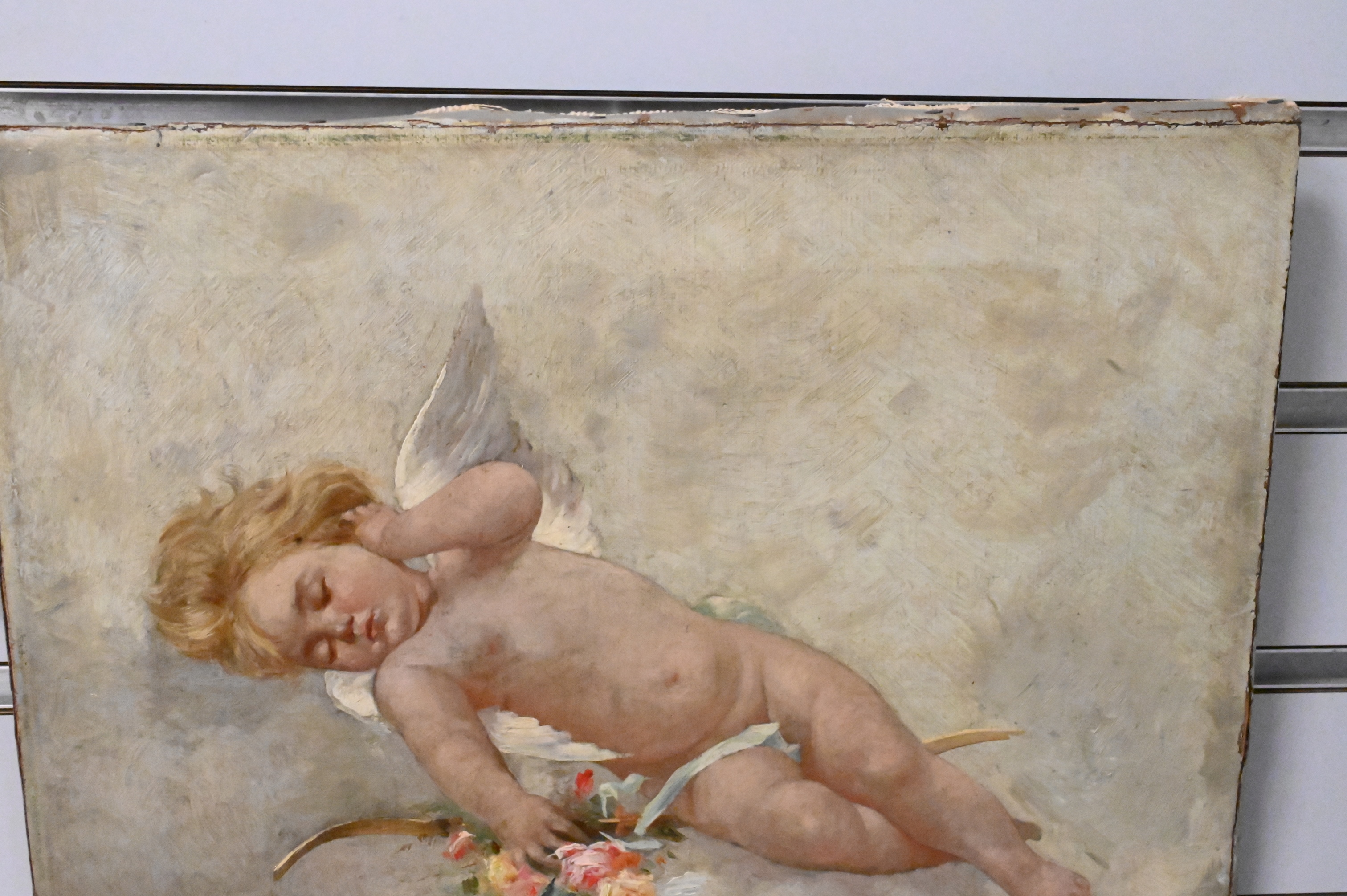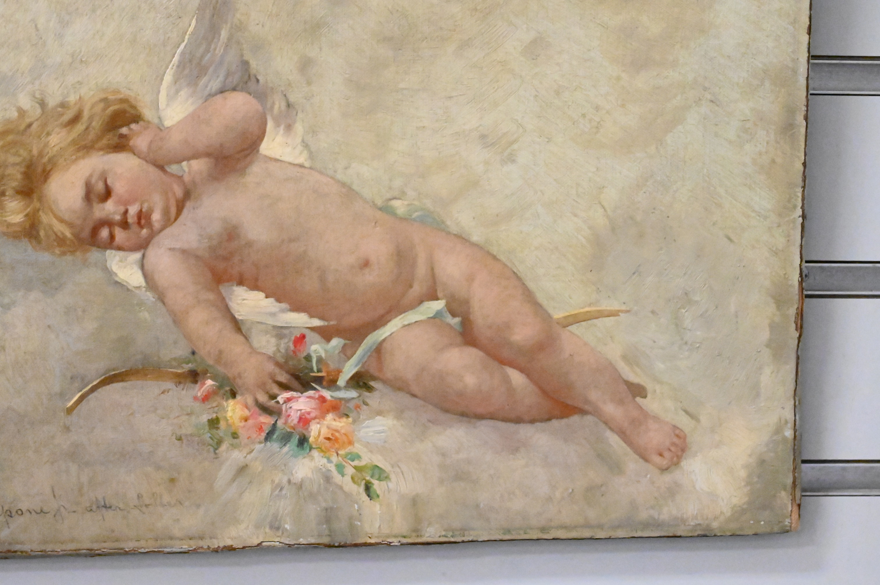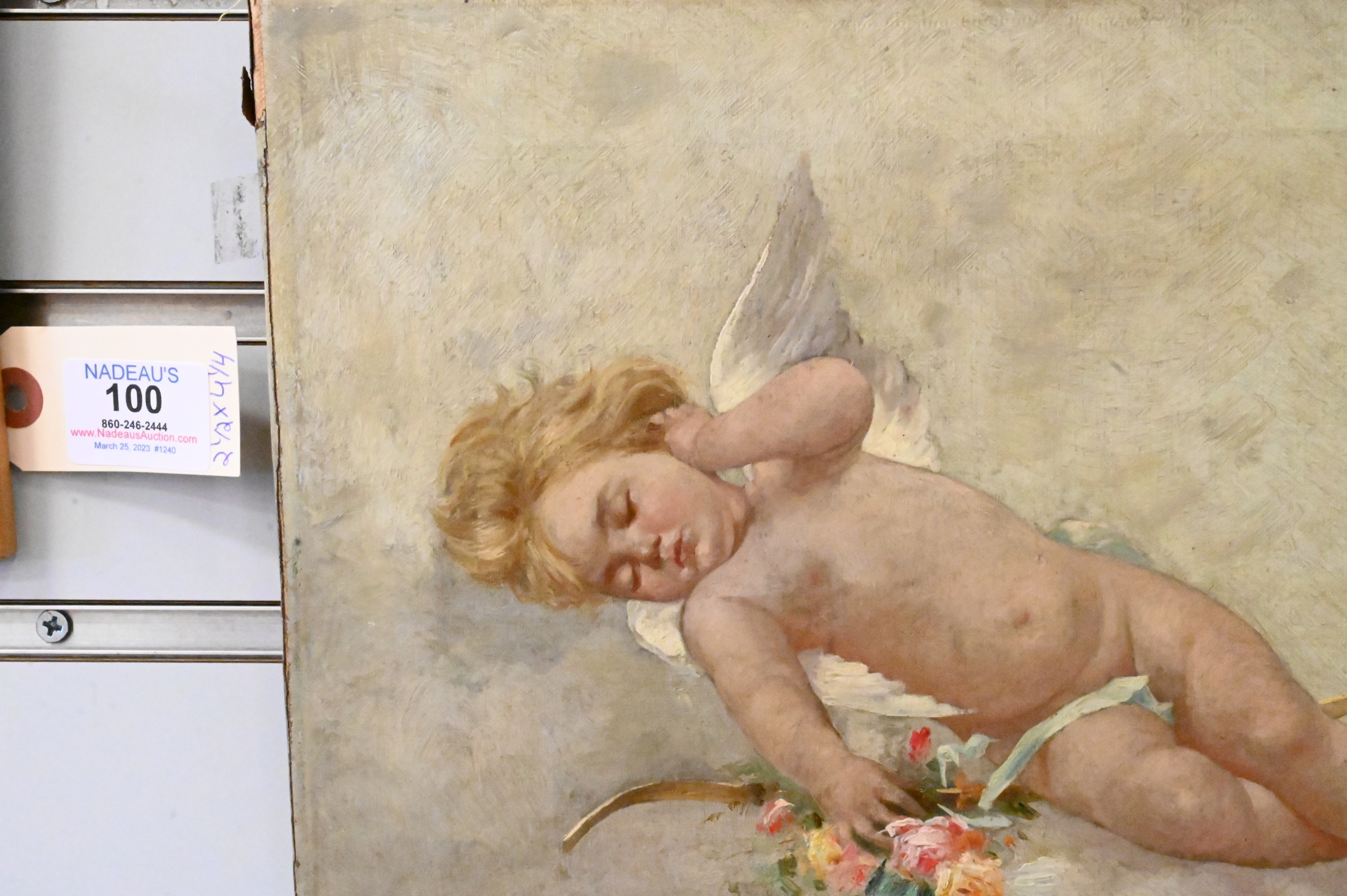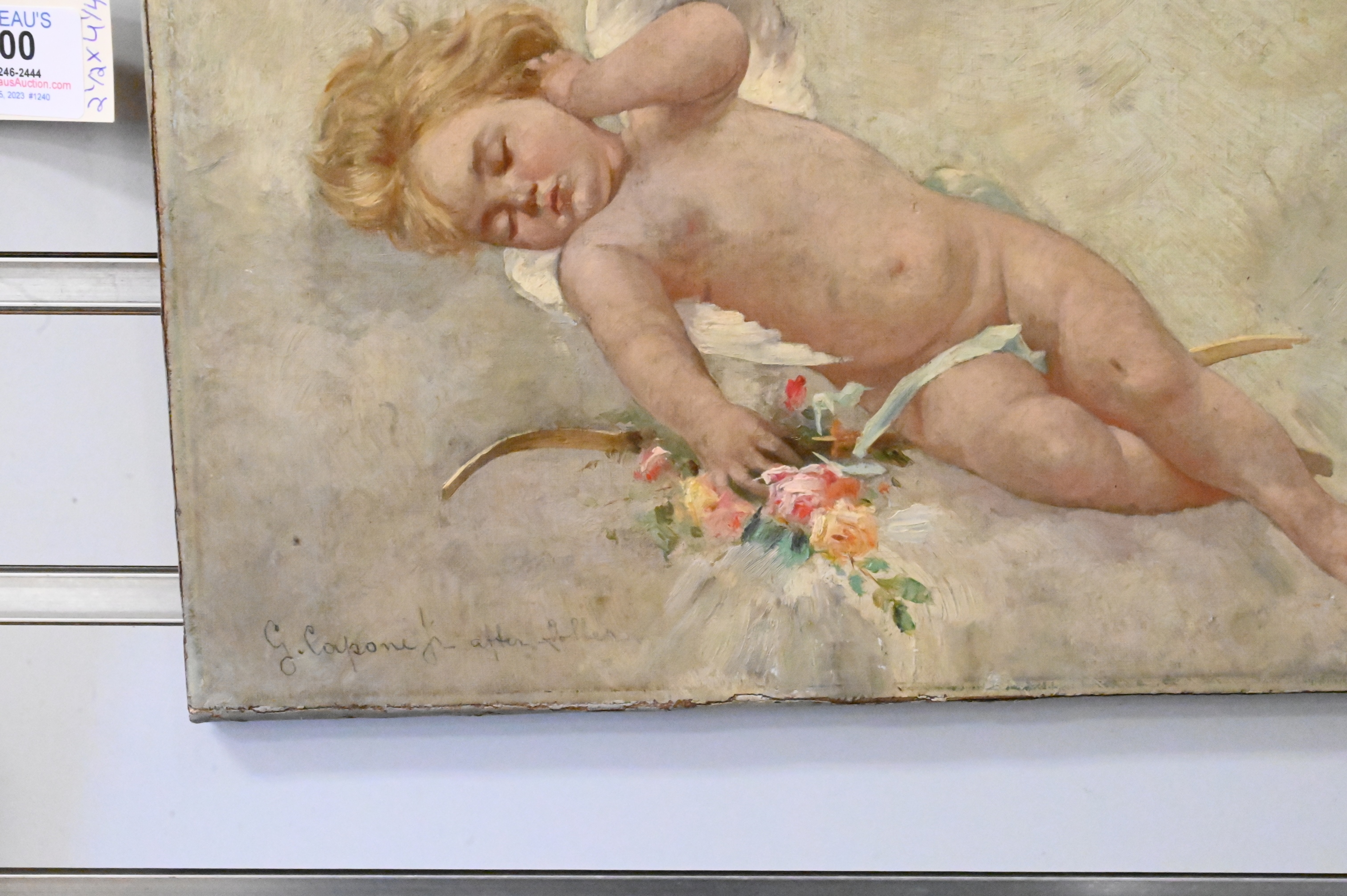 Gaetano Capone (American, 1845 – 1920), “Angelic Scene”, oil on canvas, signed lower left “G. Capone”, 10″ x 13″.