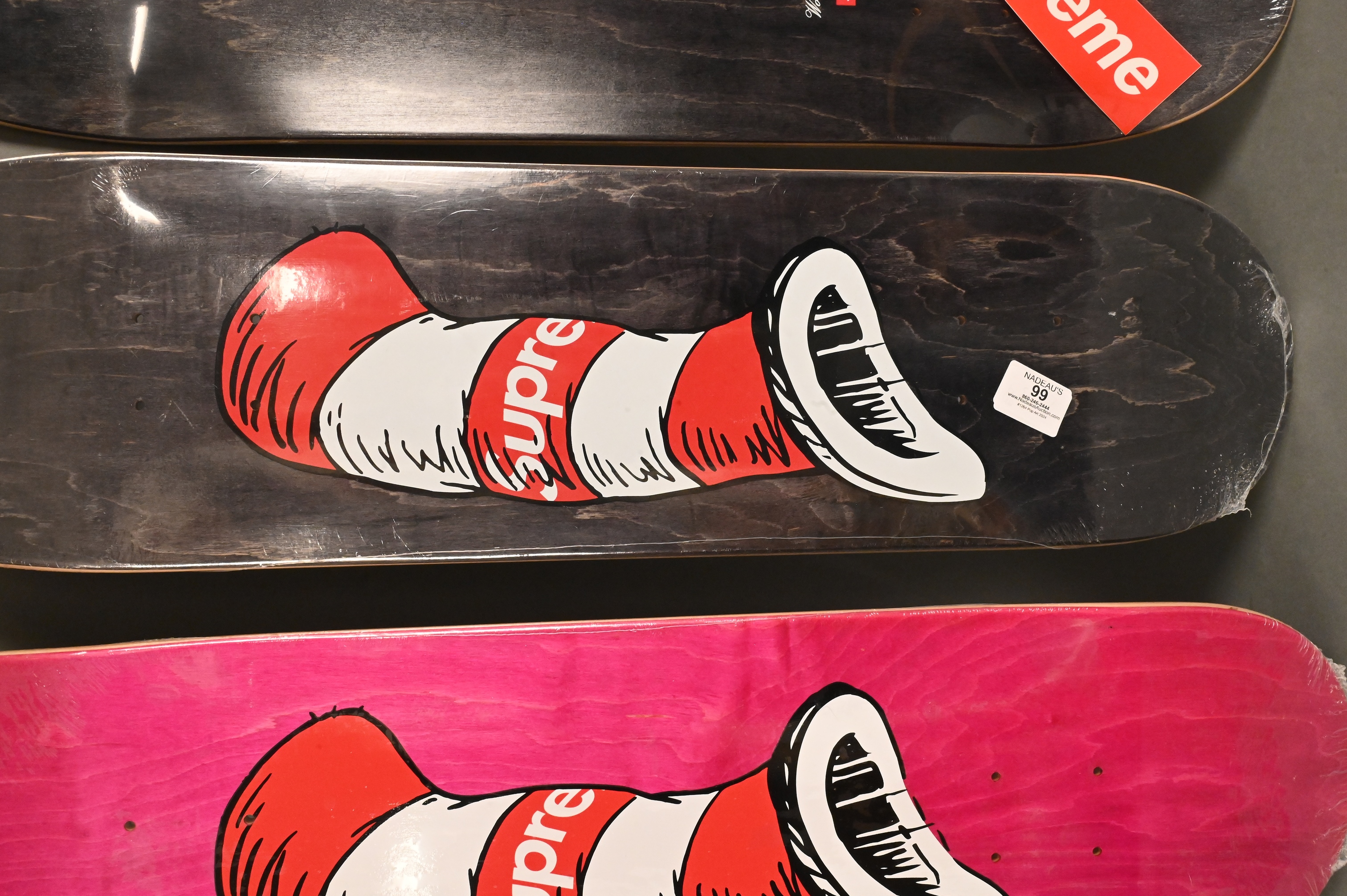Lot 99: Group of Four Cat in the Hat X Supreme Skateboards