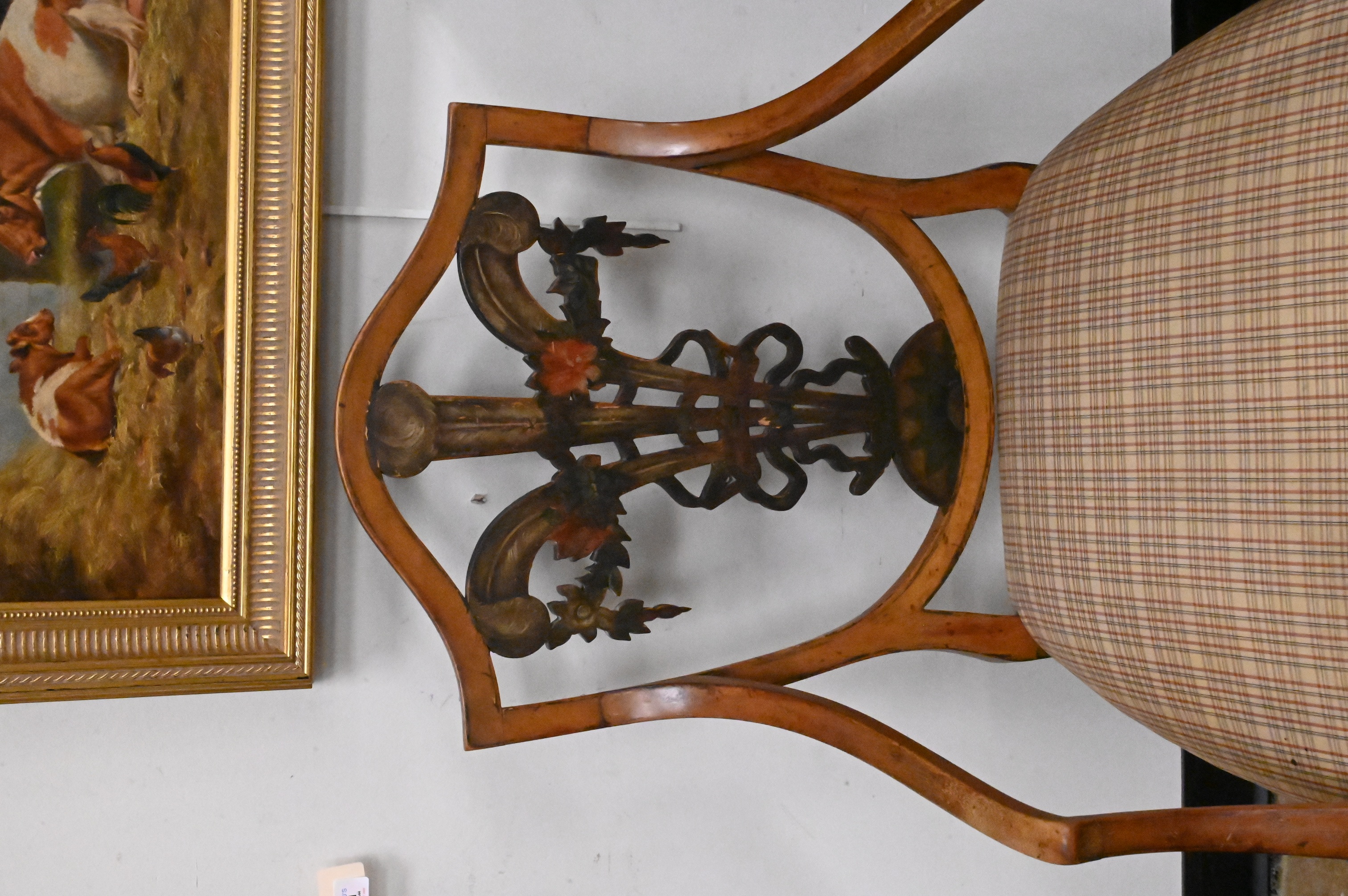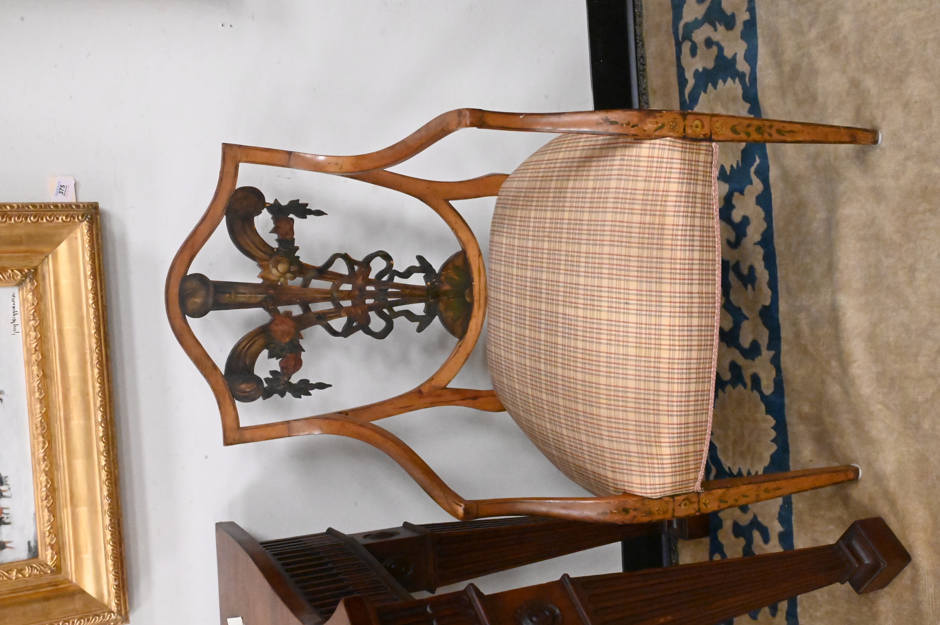 Lot 99: Pair of George III Satinwood Armchairs with Painted Backsplash