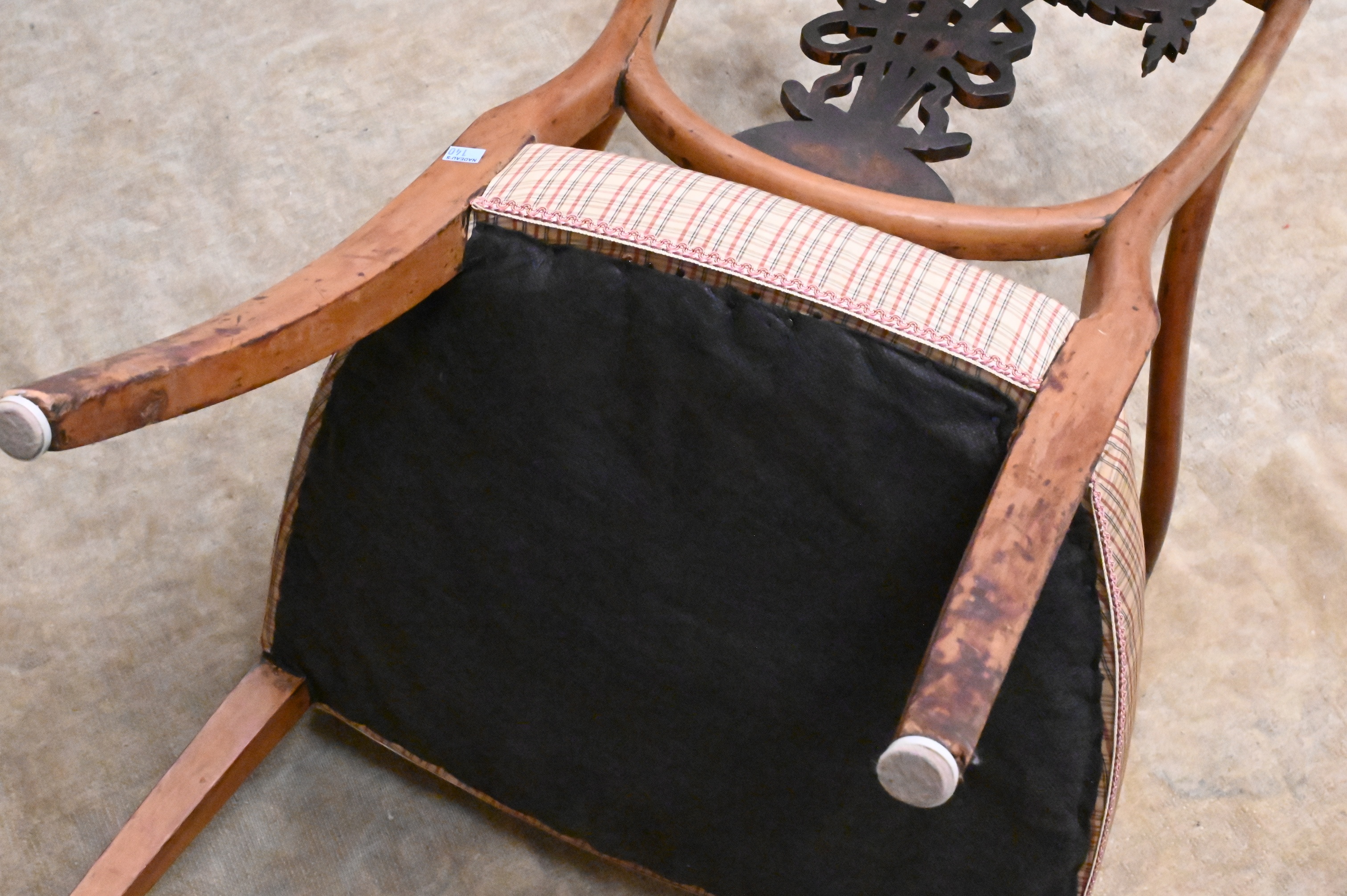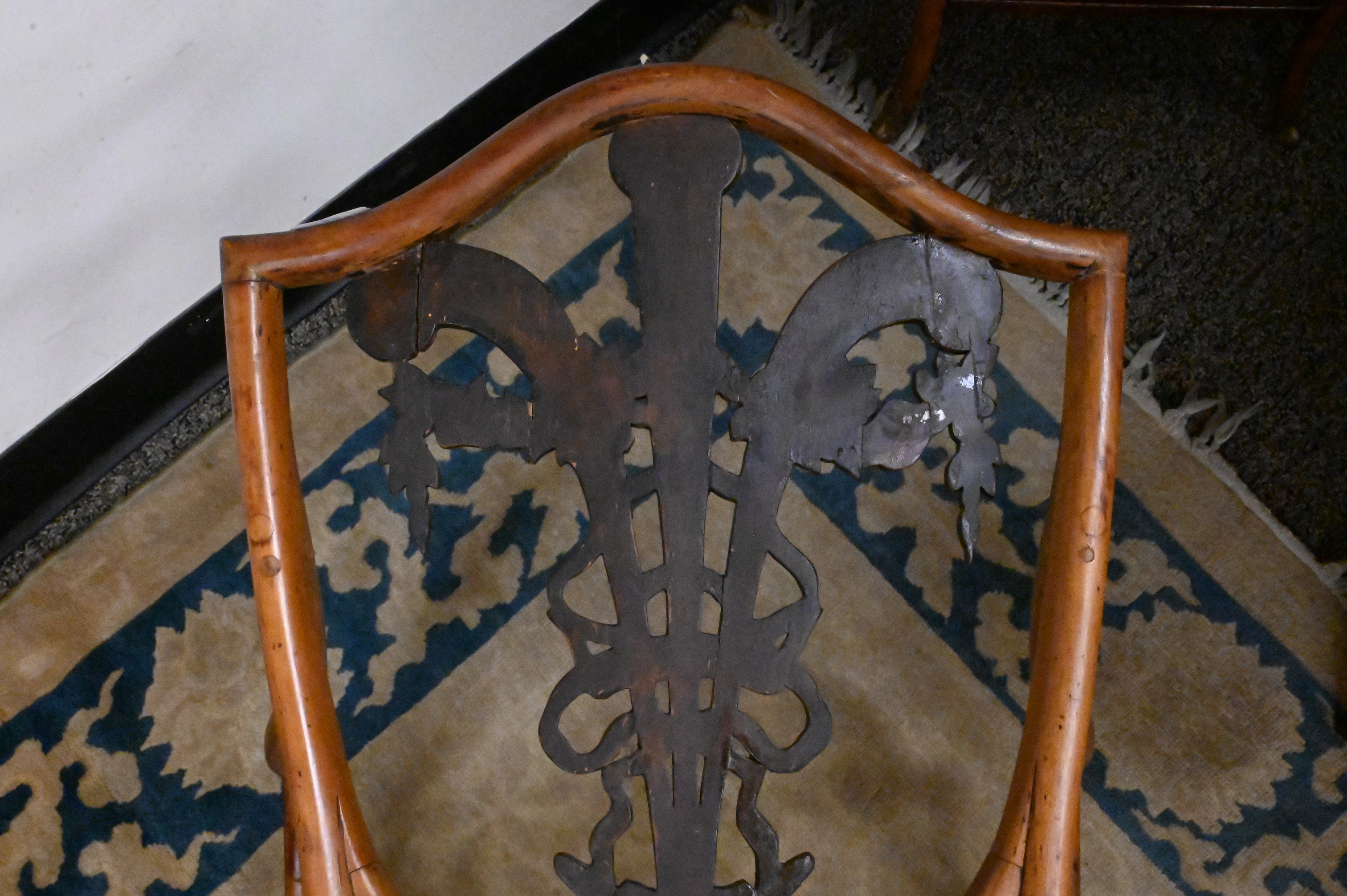 one chair with repair to Prince of Wales feather and an old repair to one arm; minor paint losses and surface wear; upholstery with light soiling