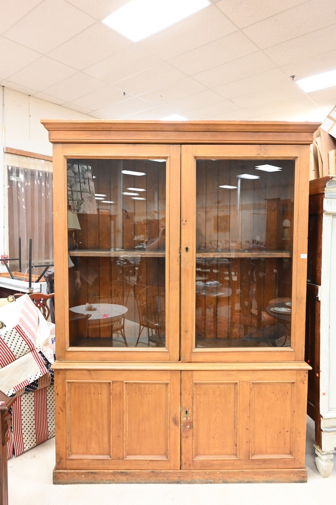 Lot 99: Pine Four Door Cabinet, 19th century, height 90 inches, width 67 inches.