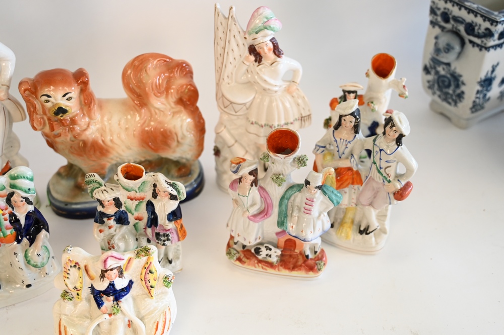 Ten Piece Figural Staffordshire Group, tallest 12 1/2 inches.