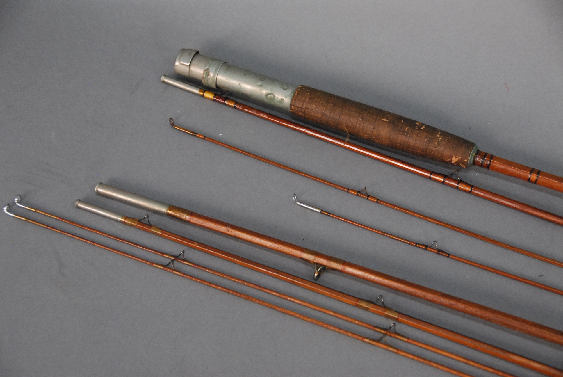 Two fly rods to include Grays custom three part bamboo fly rod with two tips 8’6 and a three part fly rod both tips shortened.