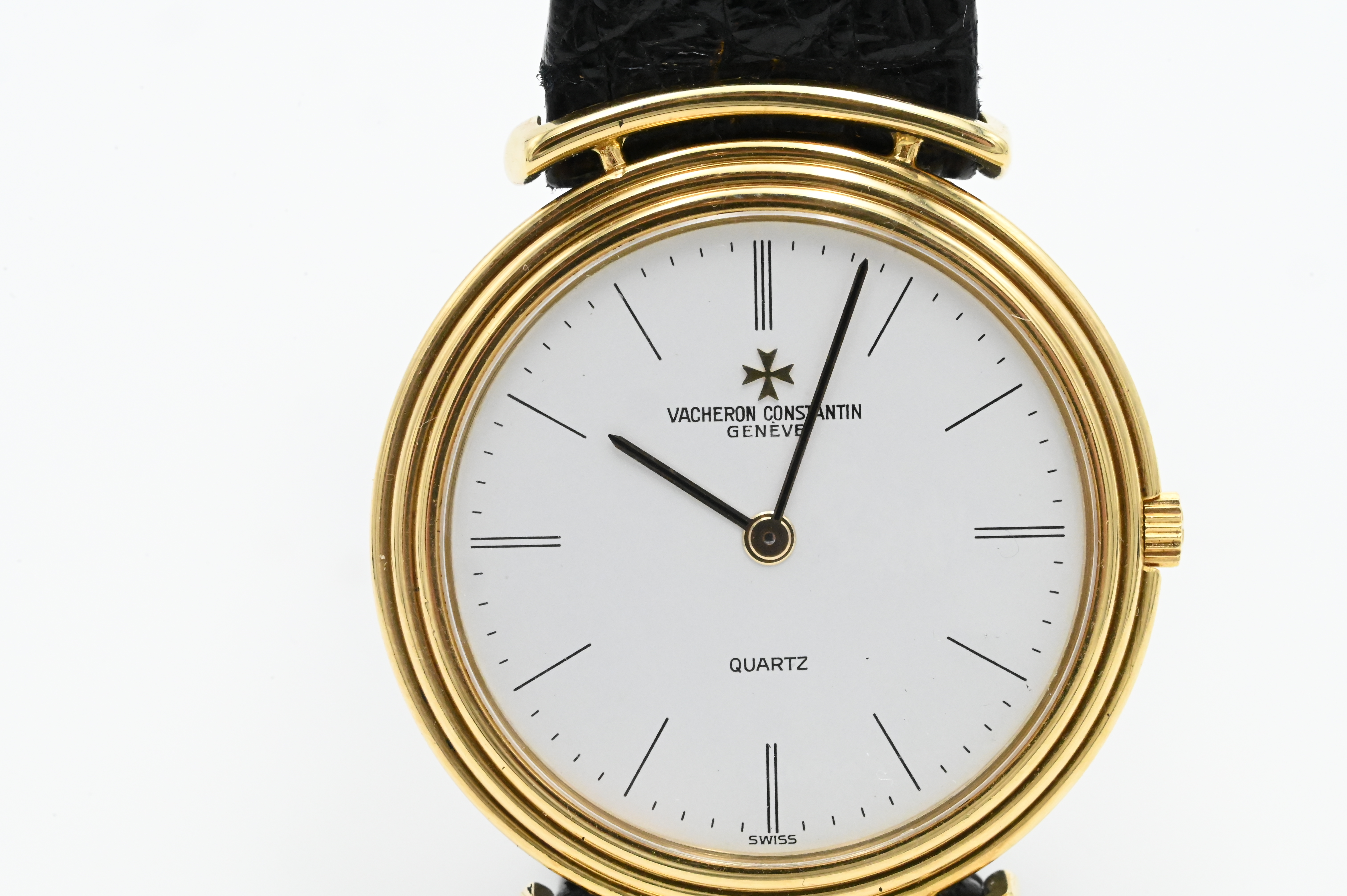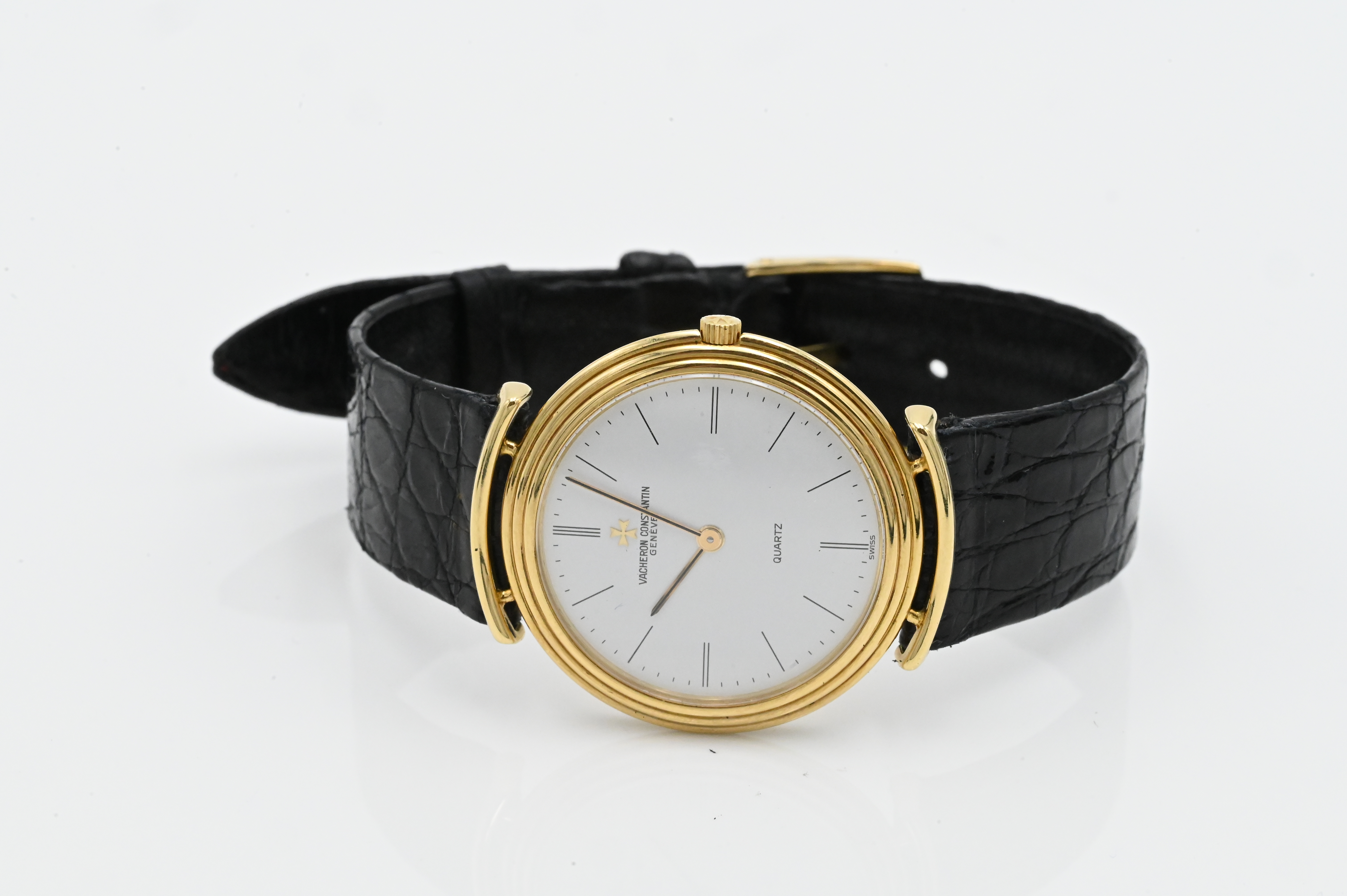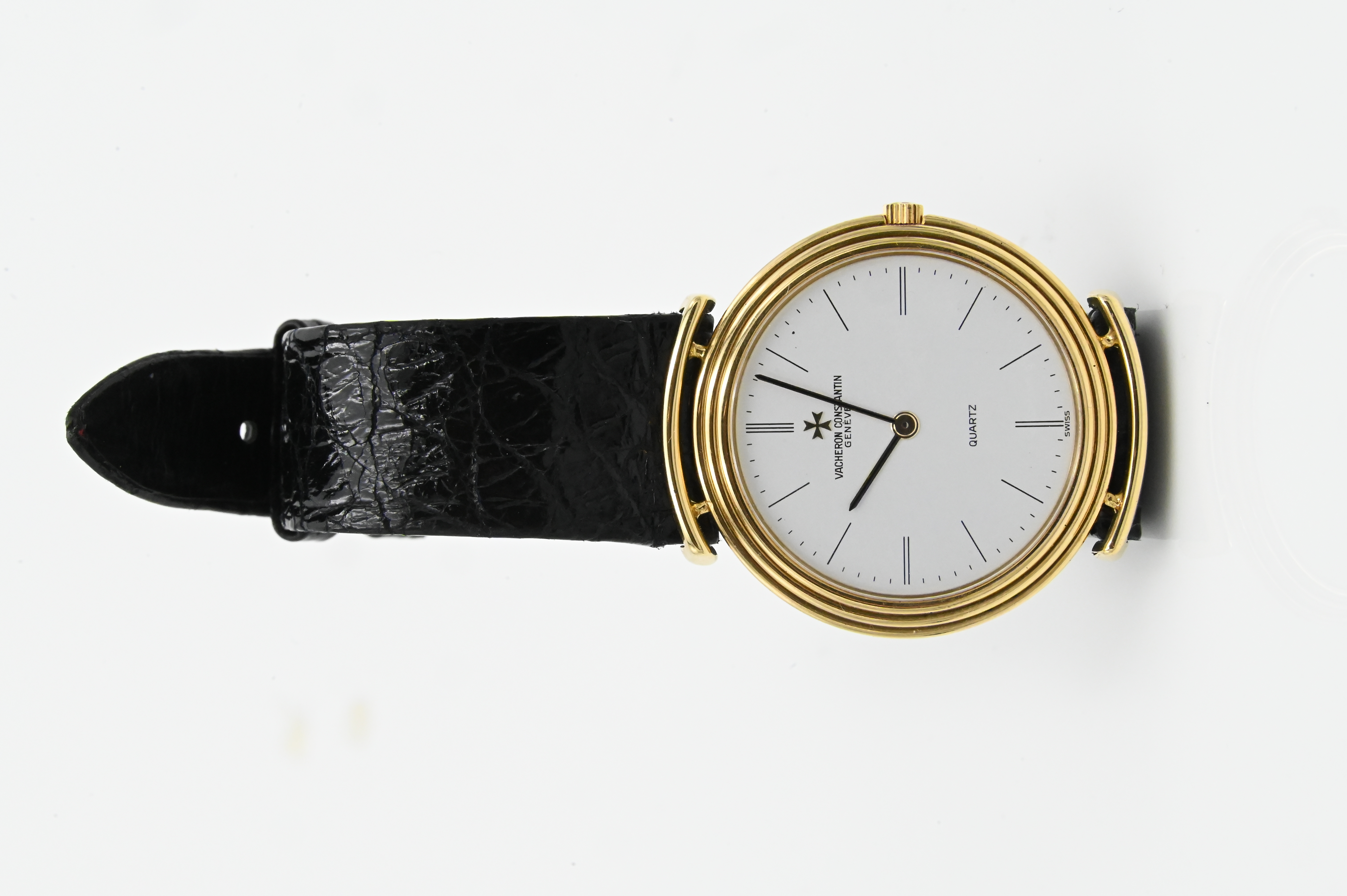 having white bezel marked Vacheron Constantin Geneve Quartz, reference number 577726, in original box