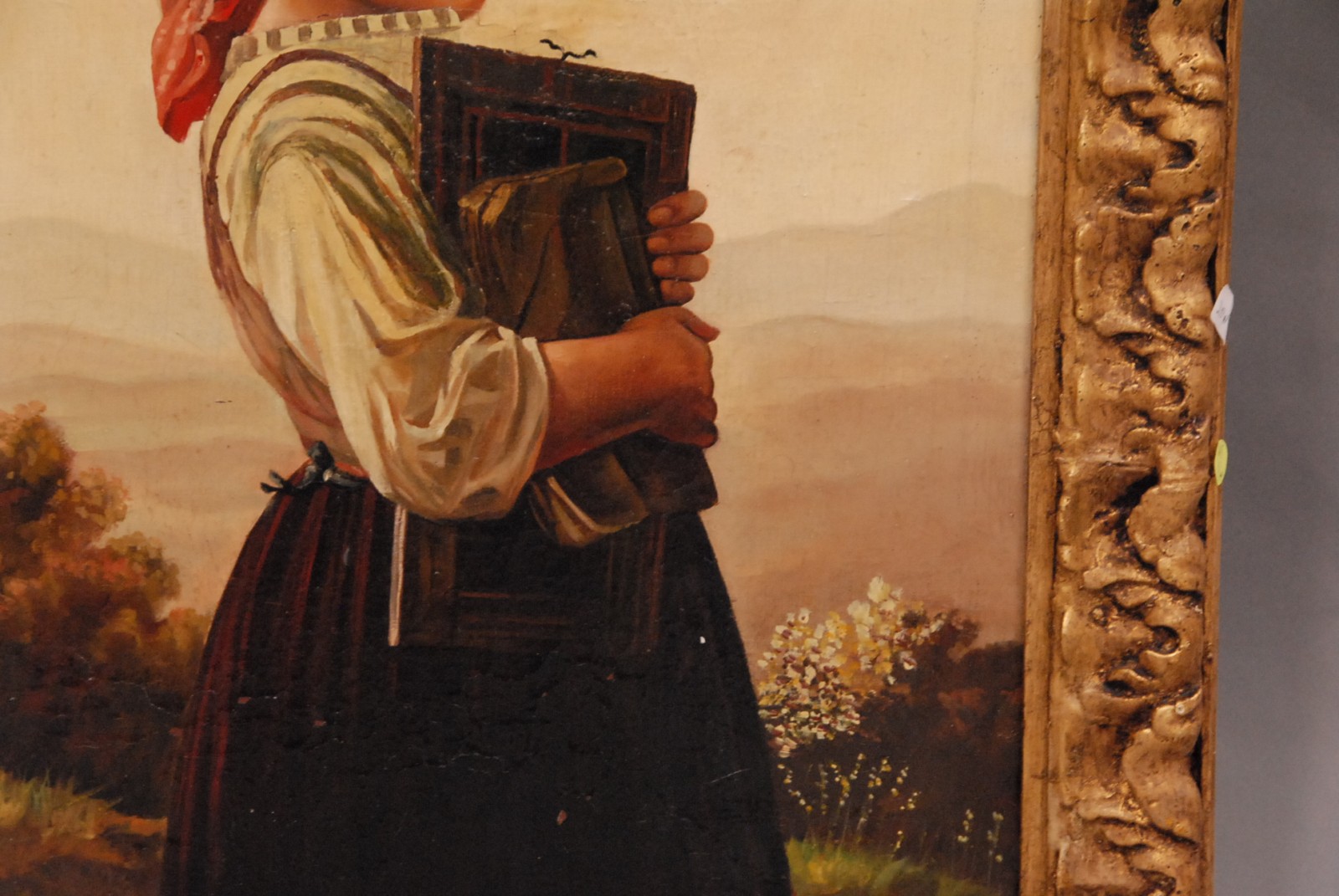 Julius Gari Melcher, YOUNG GIRL WITH BOOKS, oil on canvas, signed lower right J.G.M.