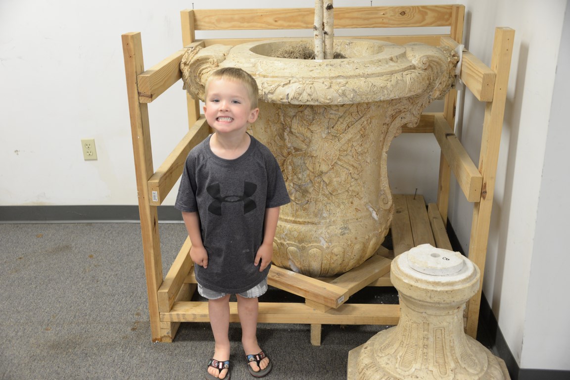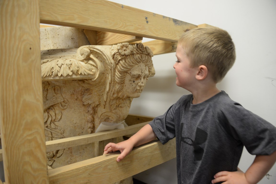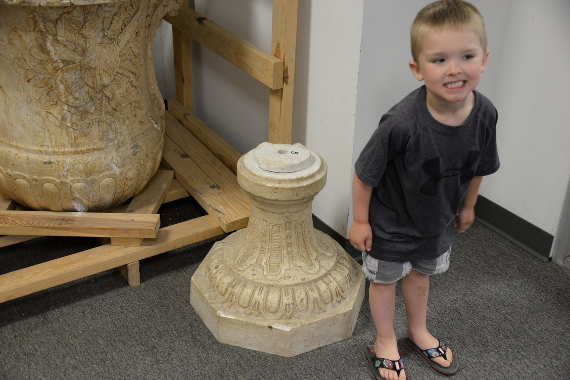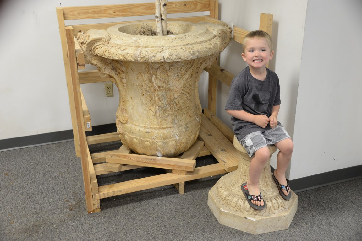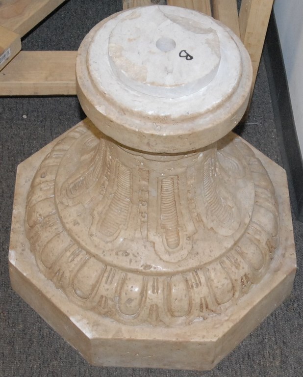 Pair of travertine, two-part urns. ht. 54in. wd. 40in. dp. 34in.